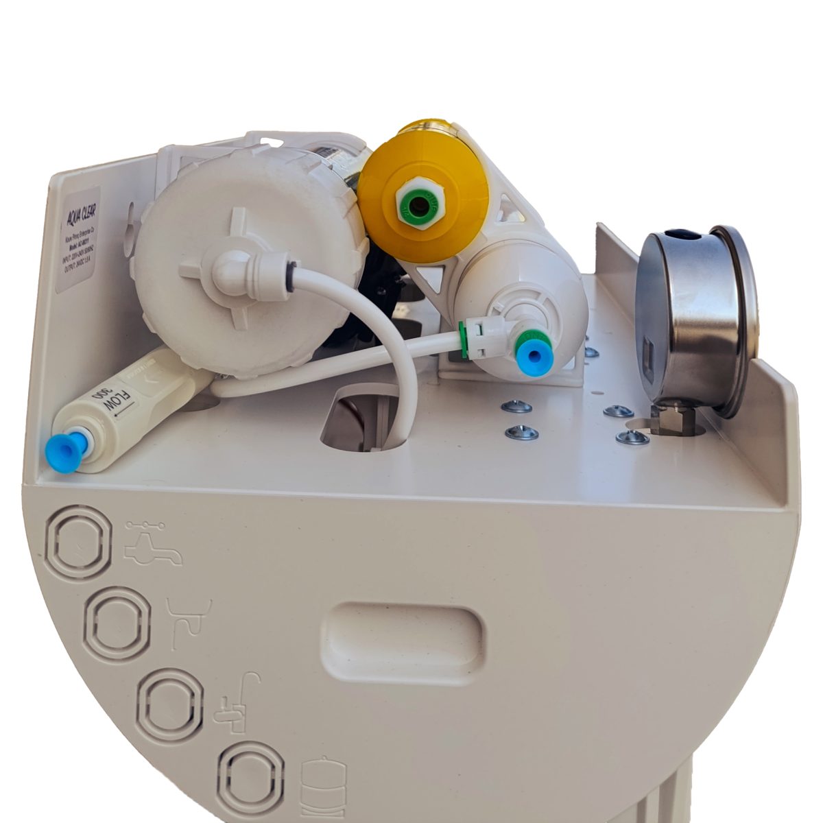 دستگاه تصفیه آب مدل  aqua clear  plast m600 دارای حوزینگ‌های تک اورینگ فشار قوی جهت جلوگیری از نشتی آب و تماماً abs با گرید غذایی می‌باشد که جنس بدنه آن از نوع فایبر گلاس می‌باشد.